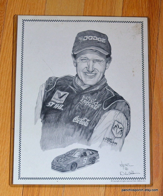 Dale Earnhardt Official Art Dale Adkins 2004 Sketch Drawing Print Signed Sealed Ebay