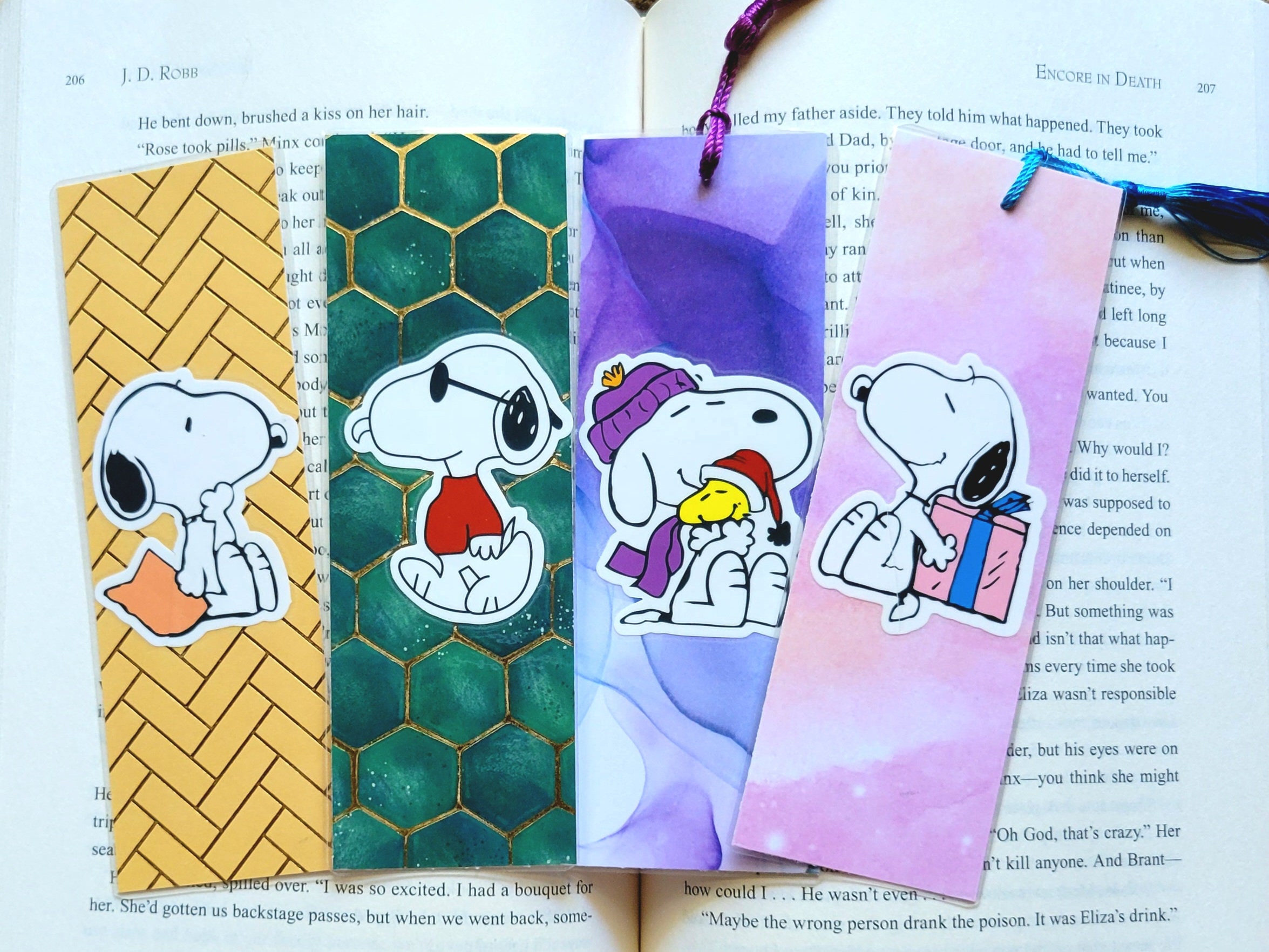 Snoopy Laminated Bookmarks With Tassels Optional Etsy